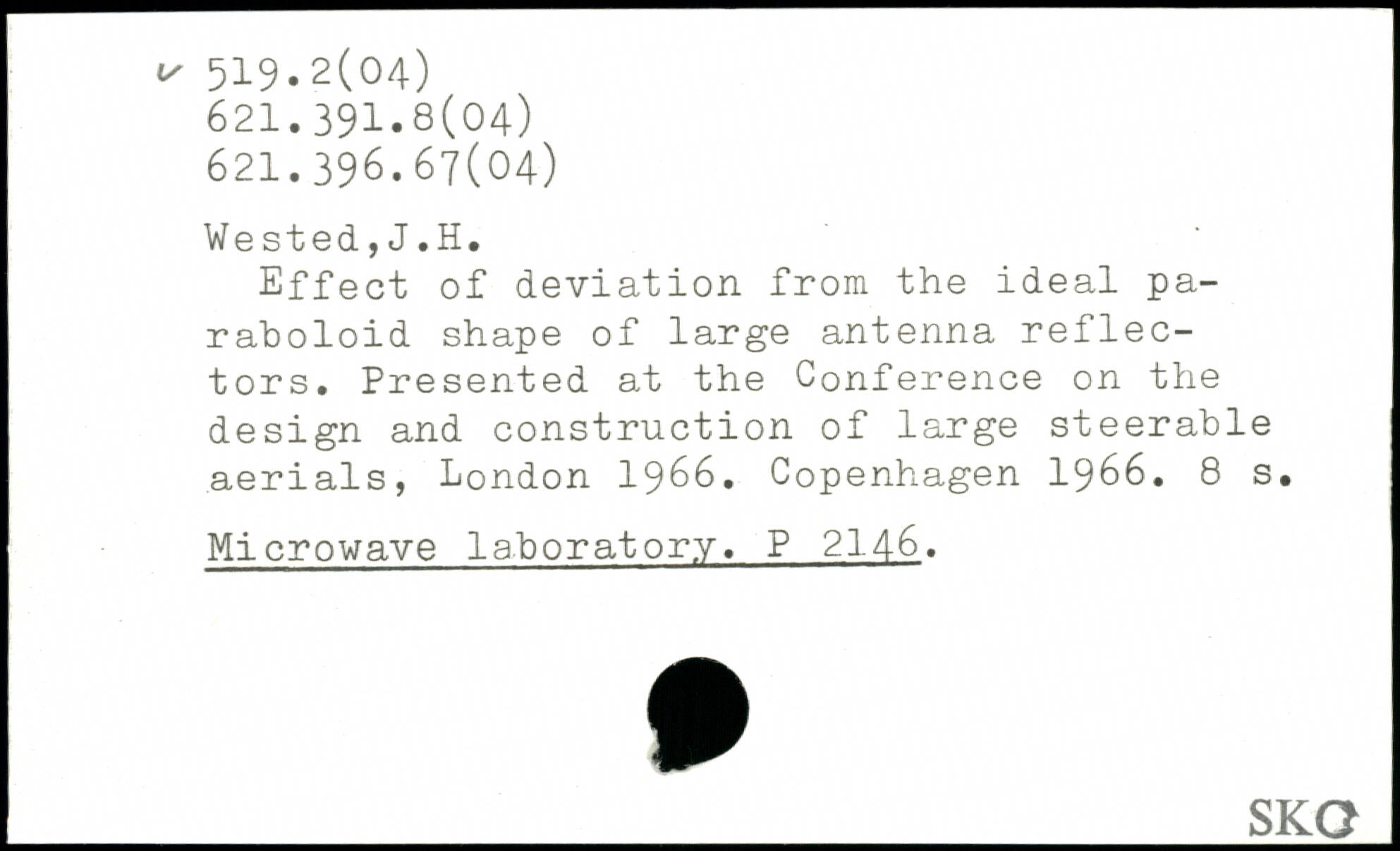 Effect of deviation from the ideal paraboloid shape of large antenna reflectors. Presented at the Conference on the design and construction of large steerable aerials