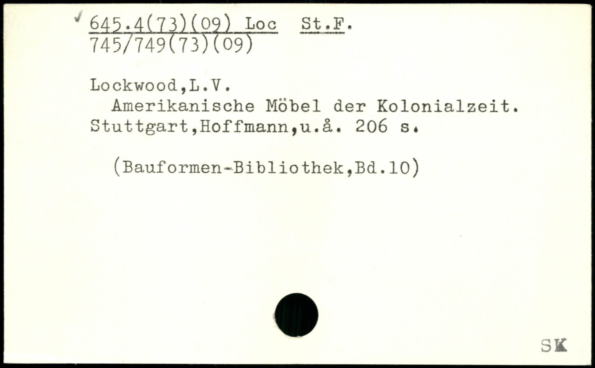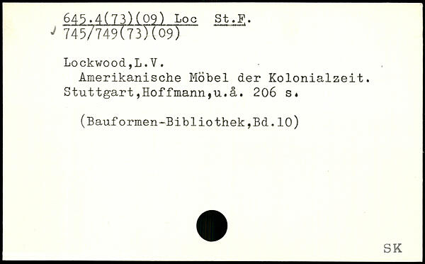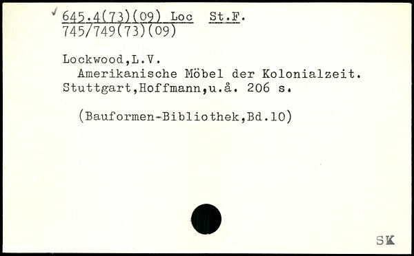 Amerikanische Möbel der Kolonialzeit. Stuttgart,Hoffmann,u.å.