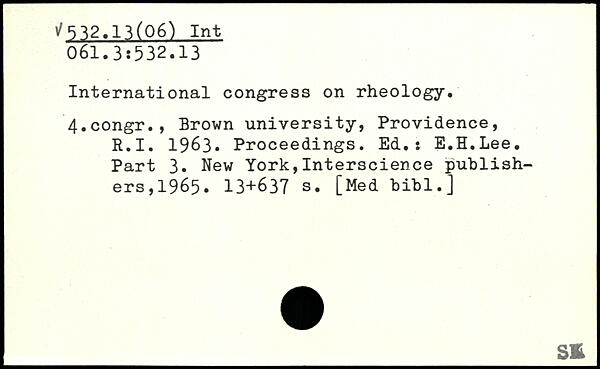 International congress on rheology. 4.congr., Brown university, Providence, R.I. 1963. Proceedings. Ed.: E.H.Lee. Part 3.