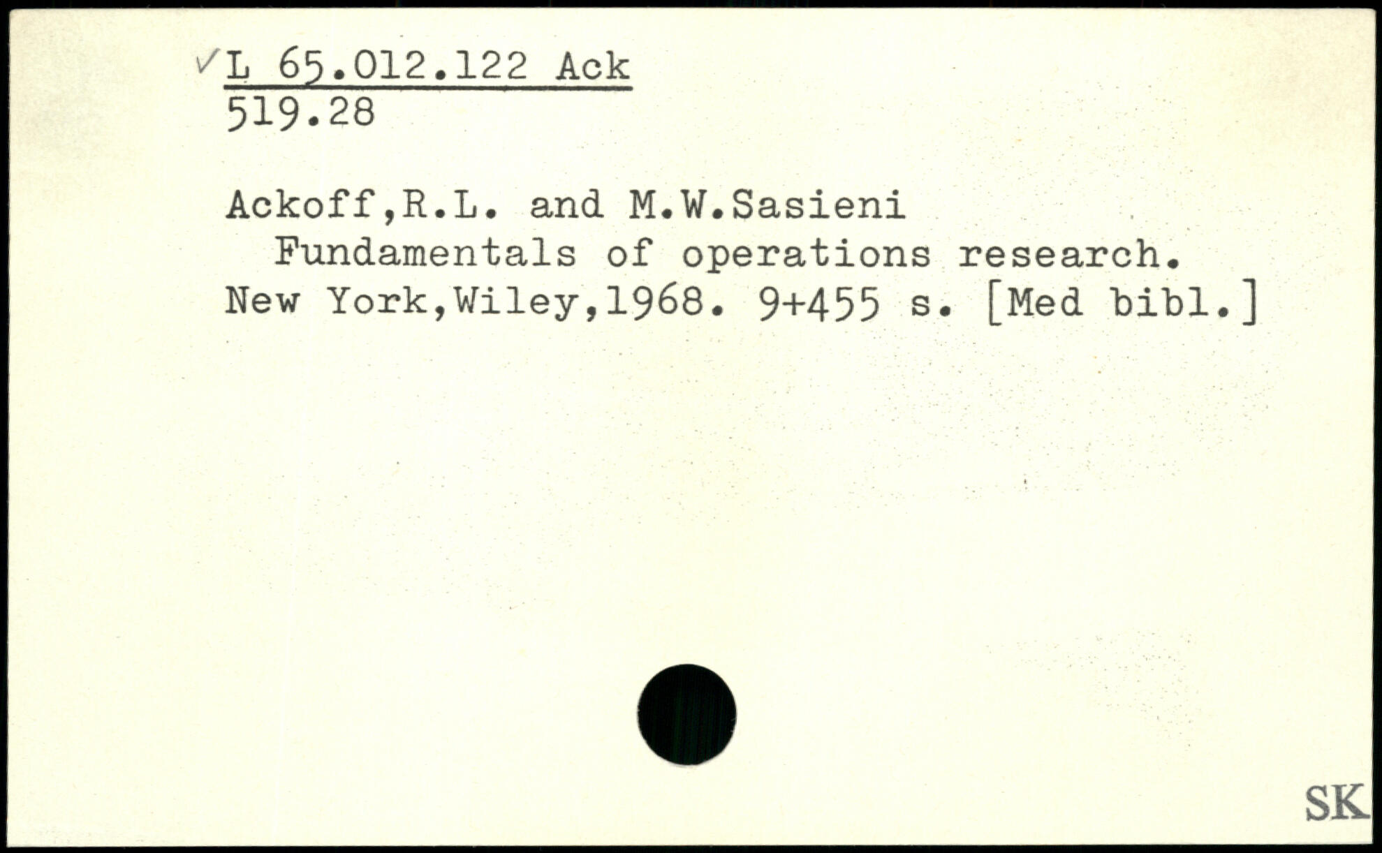 Ackoff,jR.L. and M.W.Sasieni Fundamentals of operations research.