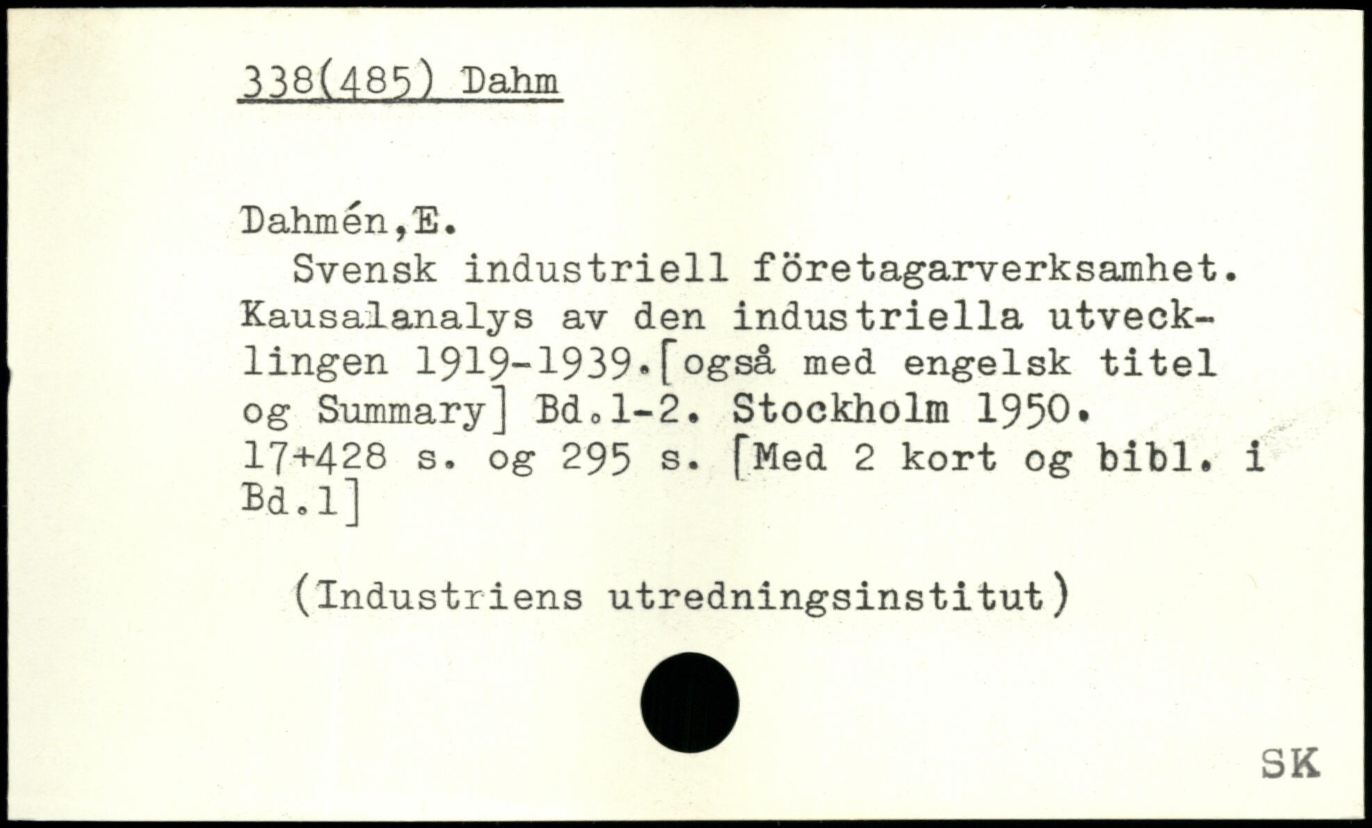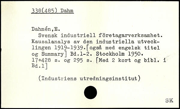 Svensk industriell företagarverksamhet. Kausalanalys av den industriella utveck-i lingen 1919-1939,fogså med engelsk titel og Summary] Bd01-2.