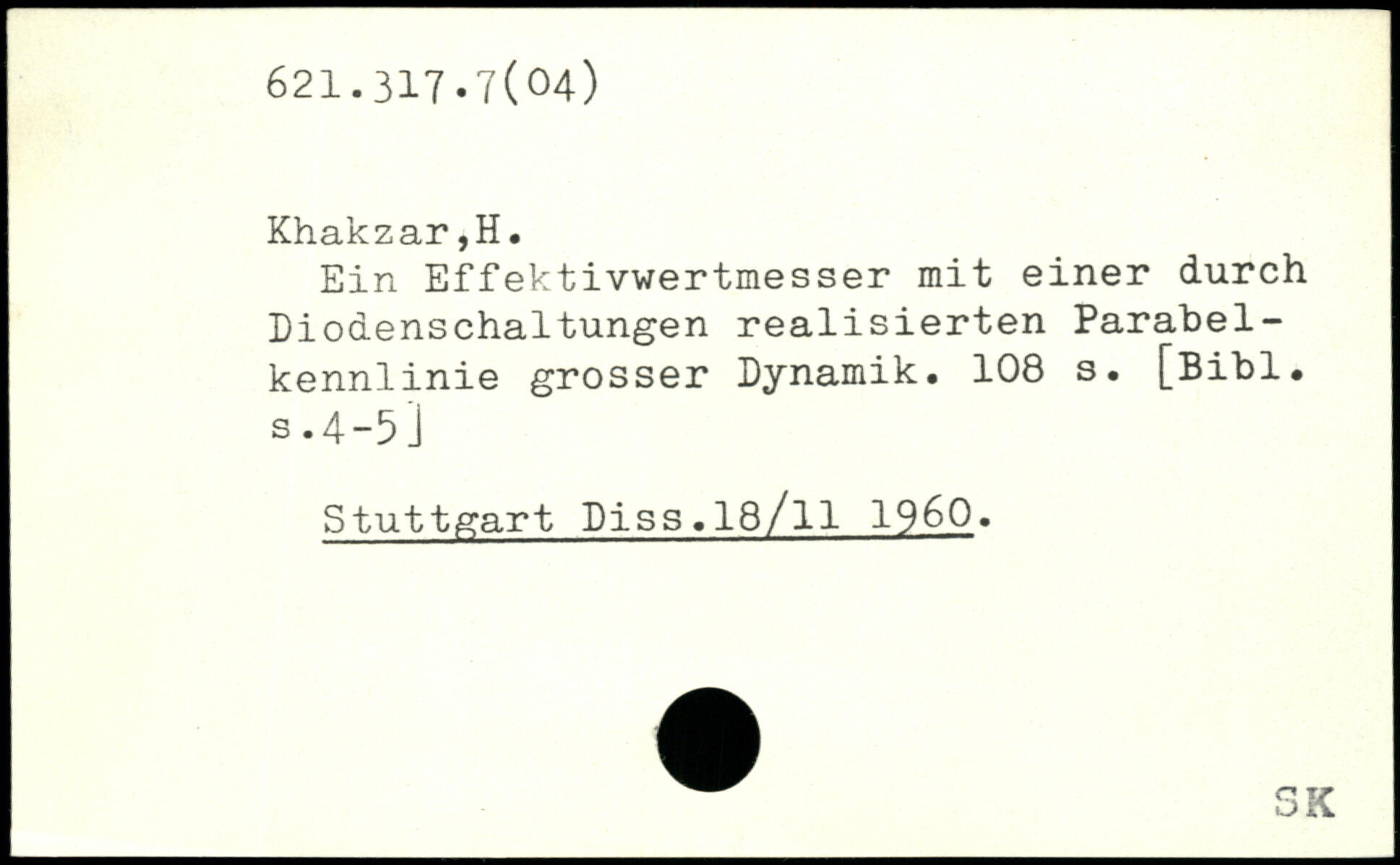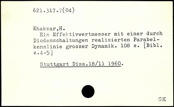 Ein Effektivwertmesser mit einer durch Diodenschaltungen realisierten Parabel-kennlinie grosser Dynamik.