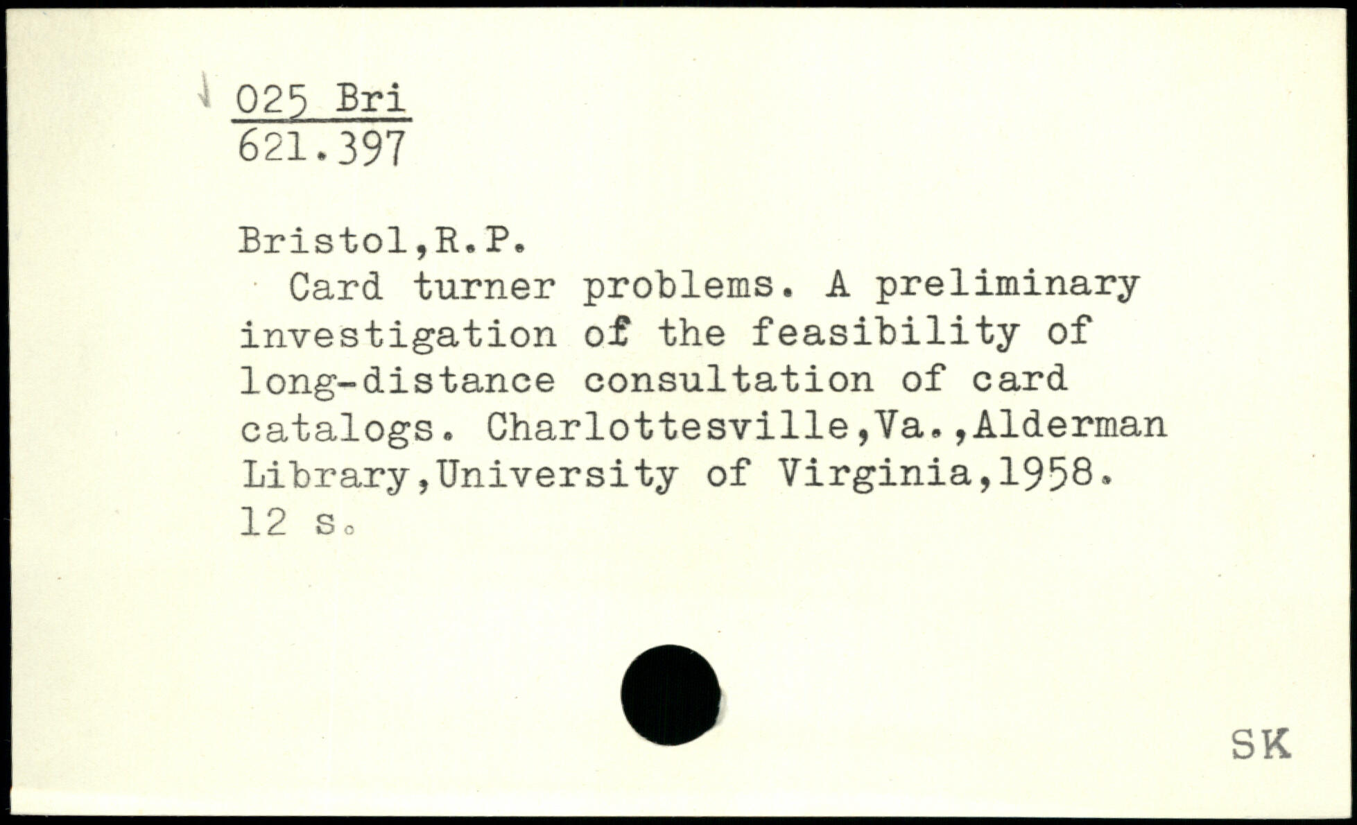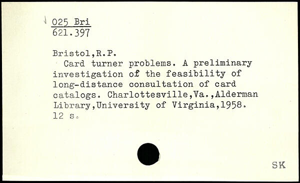 Card turner problems. A preliminary-investigation of the feasibility of long-distance consultation of card catalogs.