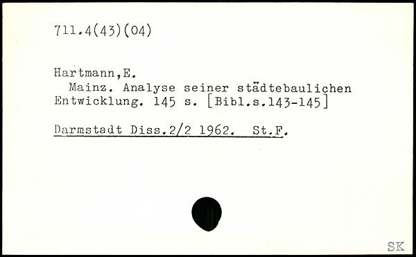 Hartmann,E. i Mainz. Analyse seiner städtebaulichen Entwicklung.