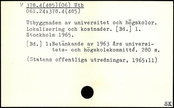 Utbyggnaden av universitet och högskolor. Lokalisering och kostnader. [Bd.] 1.