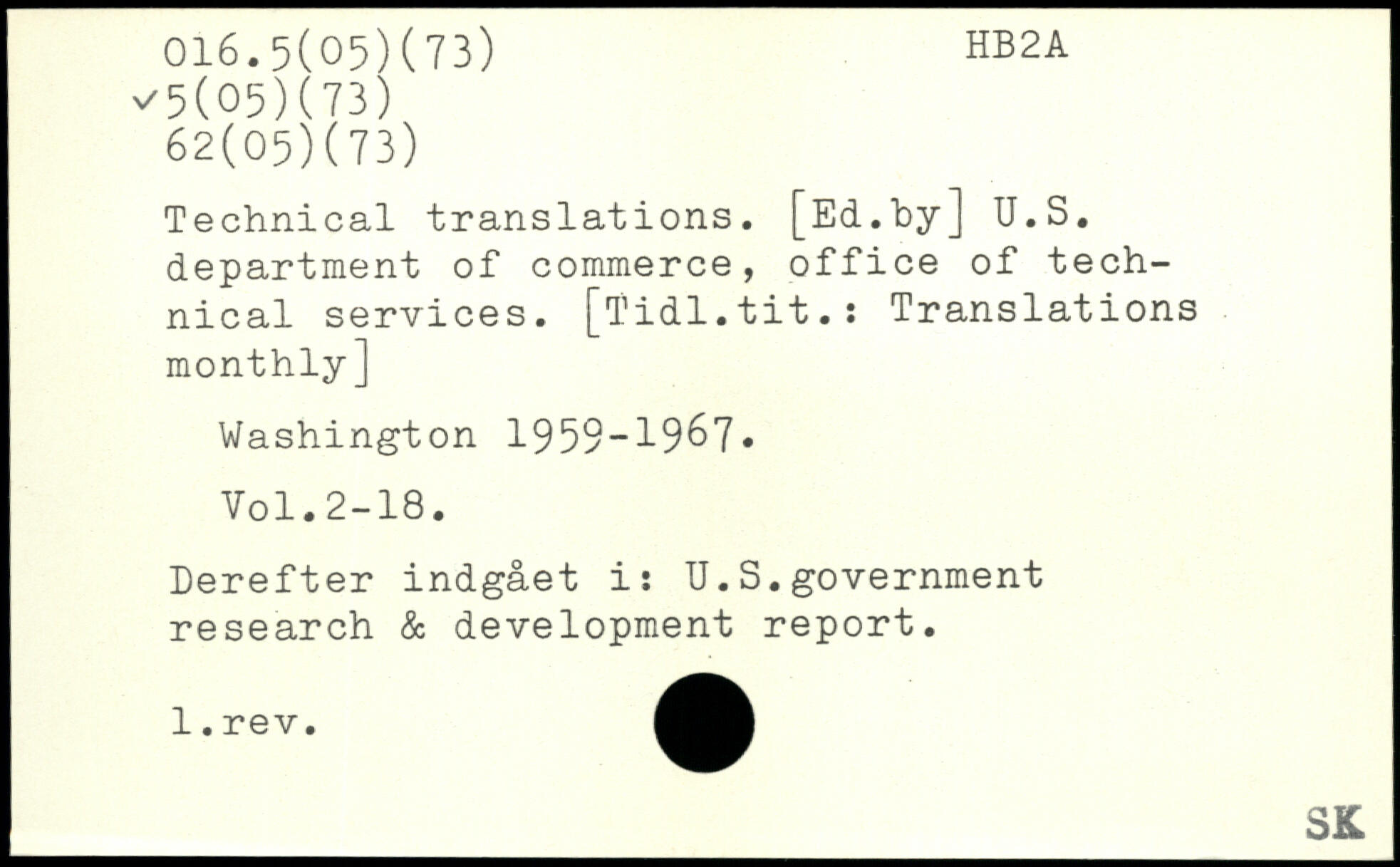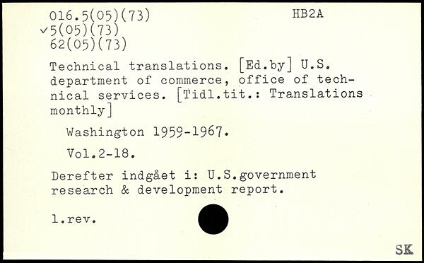 Technical translations. [Ed.hyJ U.S. department of commerce, office of technical services. [Tidl.tit.: Translations monthly]