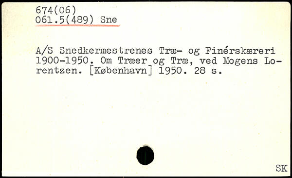 A/S Snedkermestrenes Træ- og Finérskæreri 1900-1950, Om Træer og Træ, ved Mogens Lorentzen.
