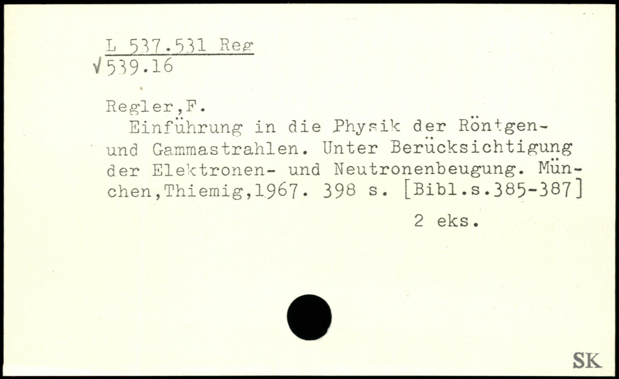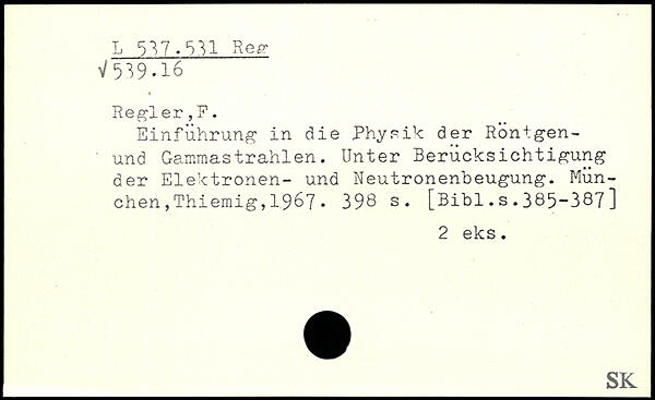 Einführung in die Physik der Rontgen-und Gammastrahlen. Unter Berücksichtigung der Elektronen- und Neutronenbeugung. München ,Thiemig,19&7.