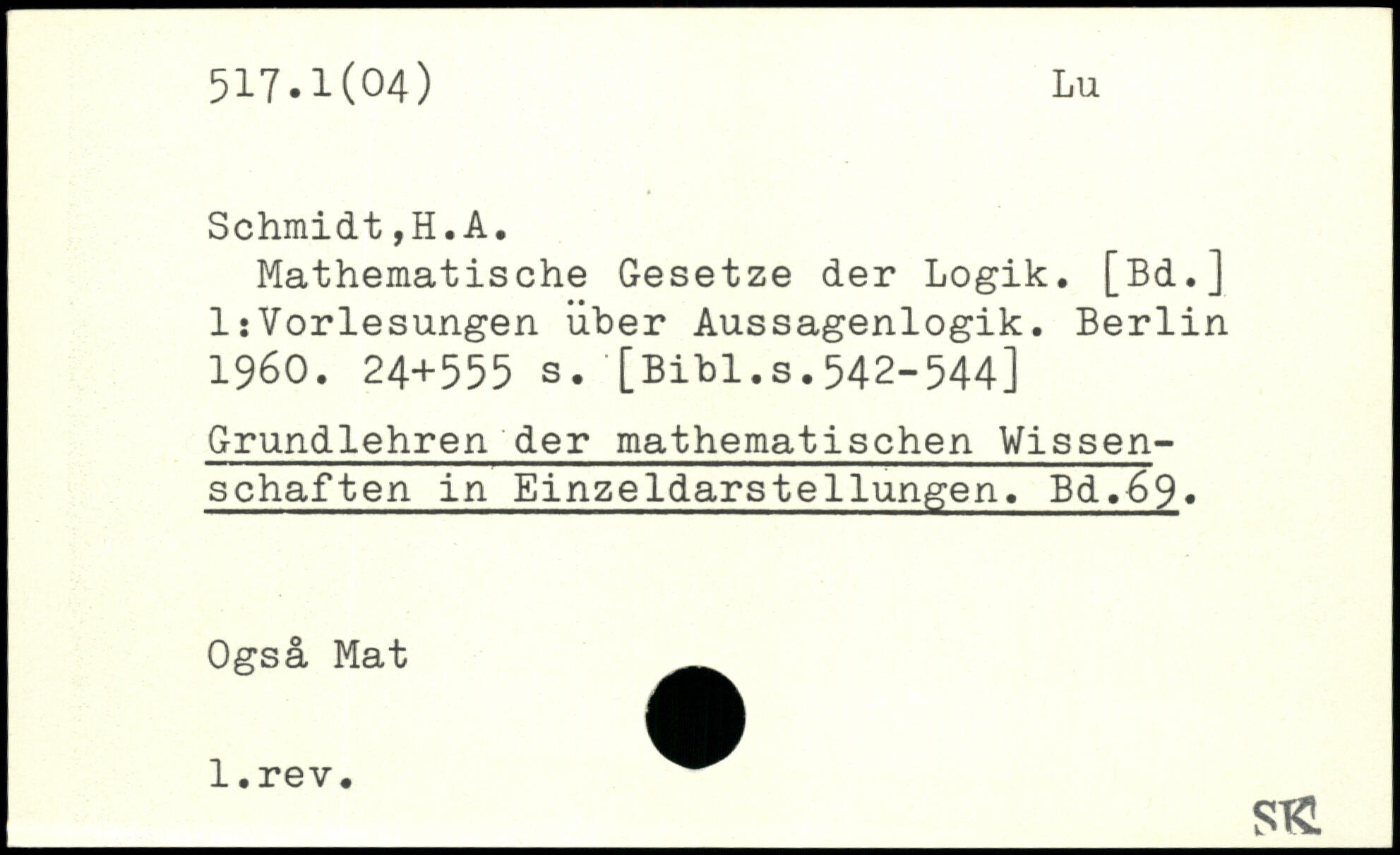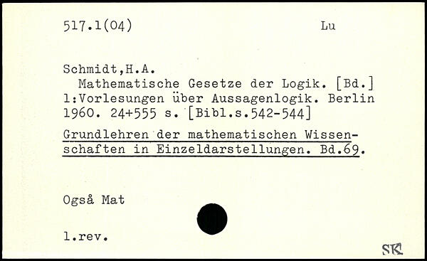 Mathematische Gesetze der Logik. [Bd.] 1:Vorlesungen über Aussagenlogik.
