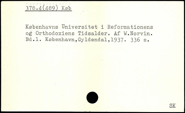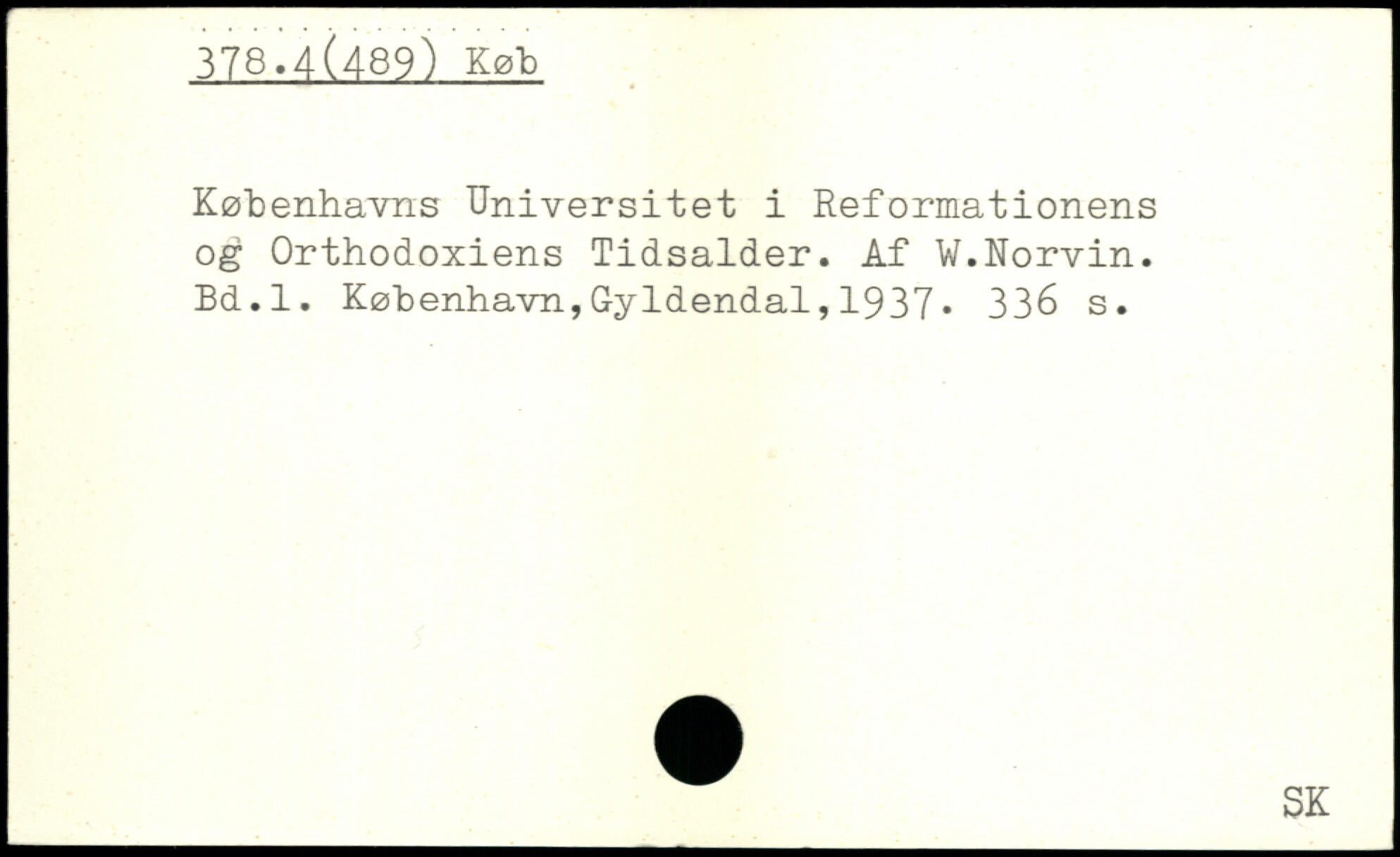 Københavns Universitet i Reformationens og Orthodoxiens Tidsalder. Af W.Norvin. Bd.l.