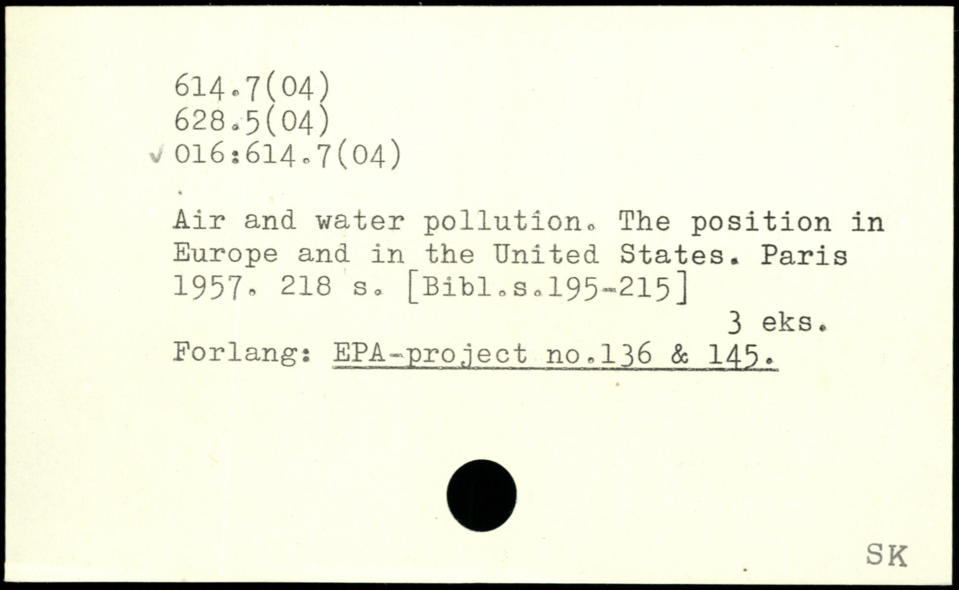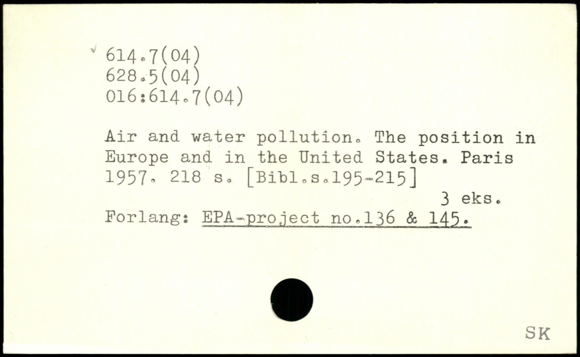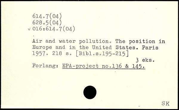 Air and water pollution. The position in Europe and in the United States.