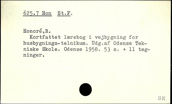 Kortfattet lærebog i vejbygning for husbygnings-telnikum. Udg.af Odense Tekniske Skole. Odense 1958.