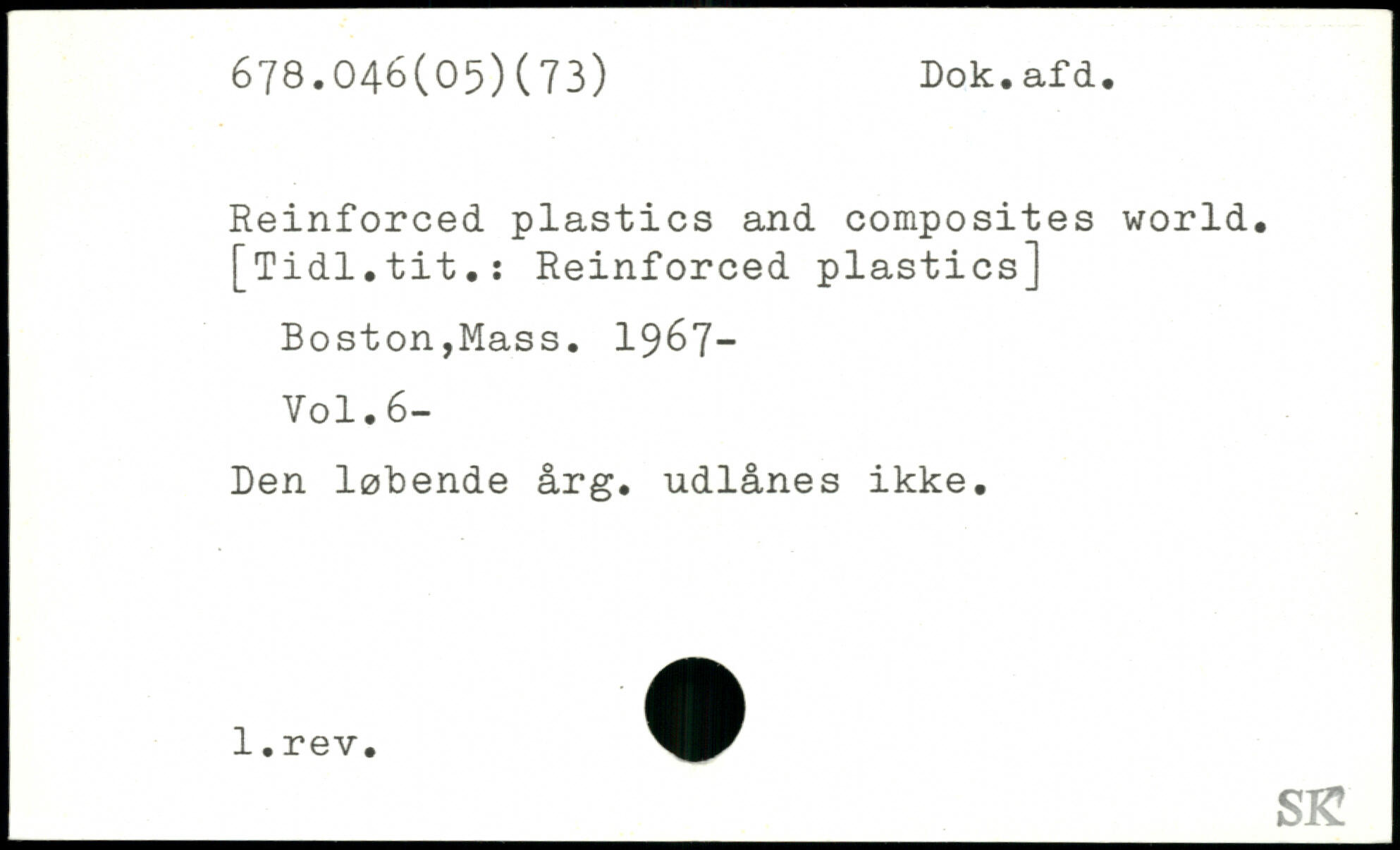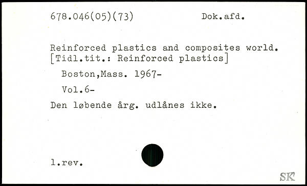 Reinforced plastics and composites world. [Tidl.tit.: Reinforced plastics] Boston,Mass. 1967-