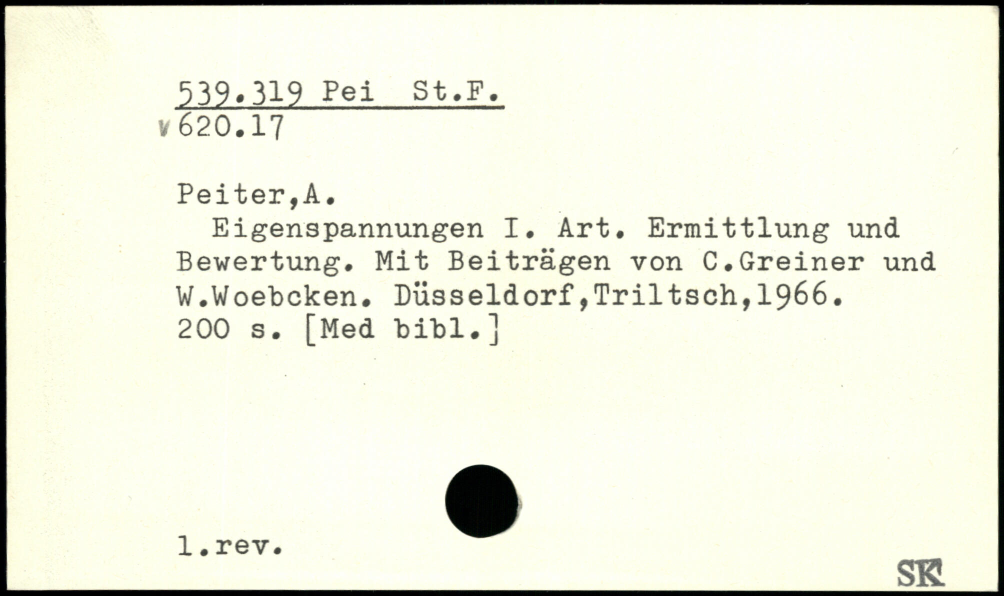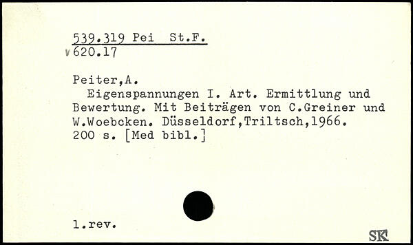 Eigenspannungen I, Art. Ermittlung und Bewertung. Mit Beiträgen von C.Greiner und W.Woebcken.