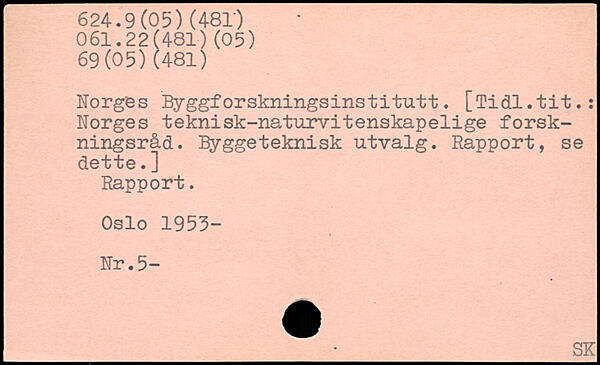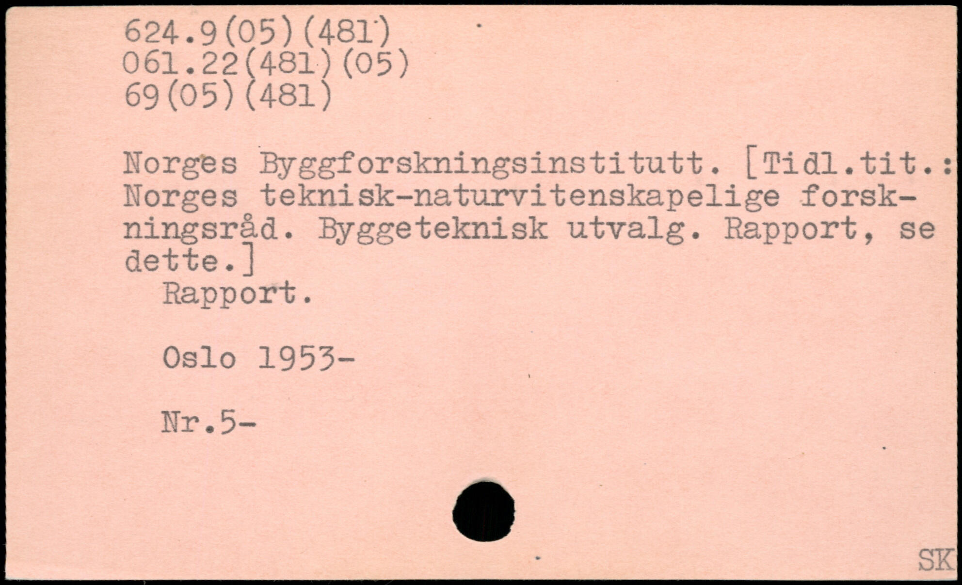 Norges Byggforskningsinstitut't. [Tidl.tit.: Norges teknisk-naturvitenskapelige forskningsråd. Byggeteknisk utvalg. Rapport, se dette.] Rapport. Oslo 1953- Nr. 5-