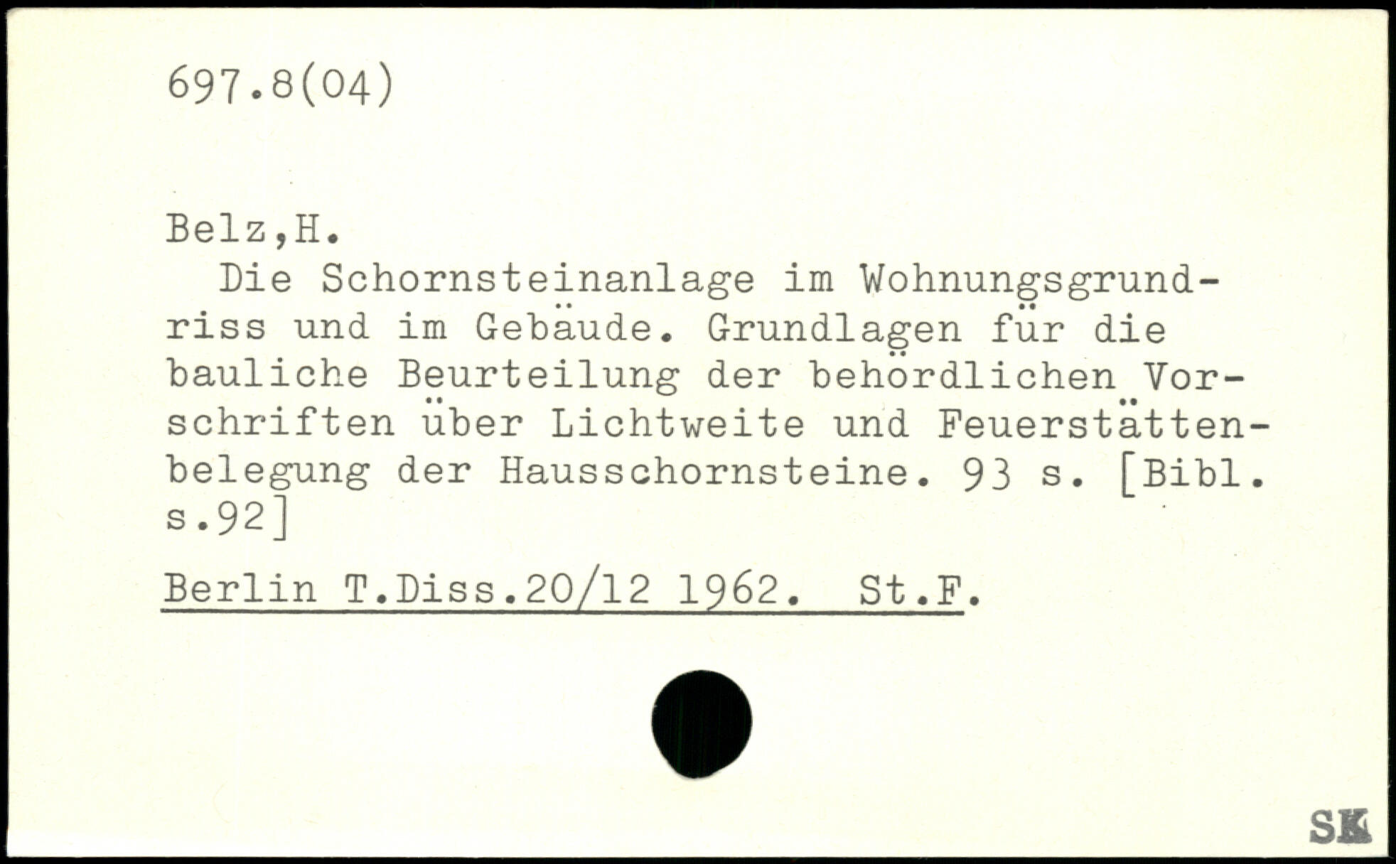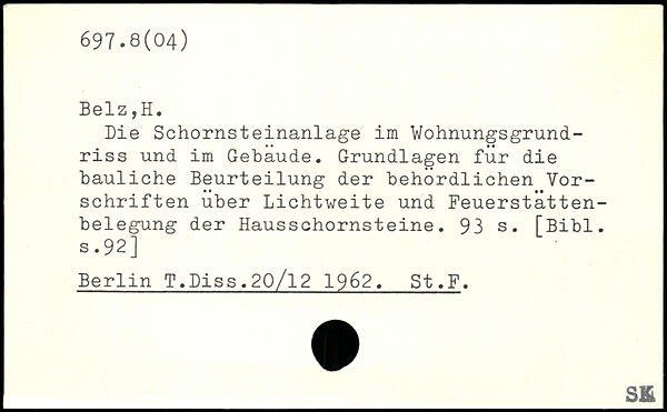 Die Schornsteinanlage im Wohnungsgrund-riss und im Gebäude. Grundlagen für die bauliche Beurteilung der behördlichen Vorschriften über Lichtweite und Feuerstatten-belegung der Hausschornsteine.