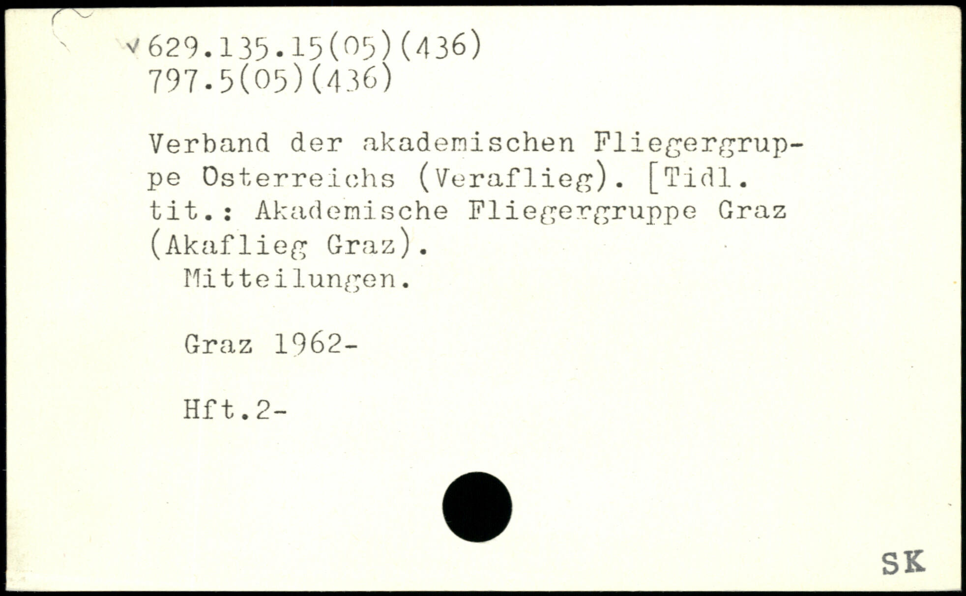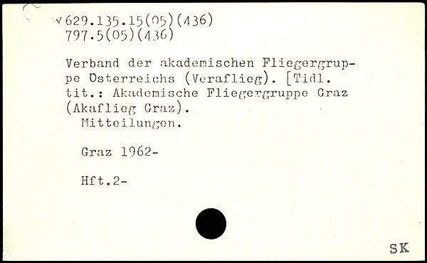 Verband der akademischen Fliegertruppe Österreichs (Veraflieg). [Tidl. tit.: Akademische Fliegergruppe Graz (Akaflieg Graz). Mitteilungen. Graz 1962- Hft.2-