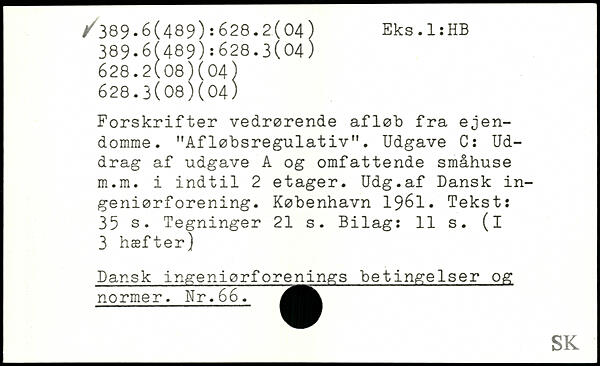 Forskrifter vedrørende afløb fra ejendomme. "Afløbsregulativ". Udgave C: Uddrag af udgave A og omfattende småhuse m.m. i indtil 2 etager. Udg.af Dansk ingeniørf orening.