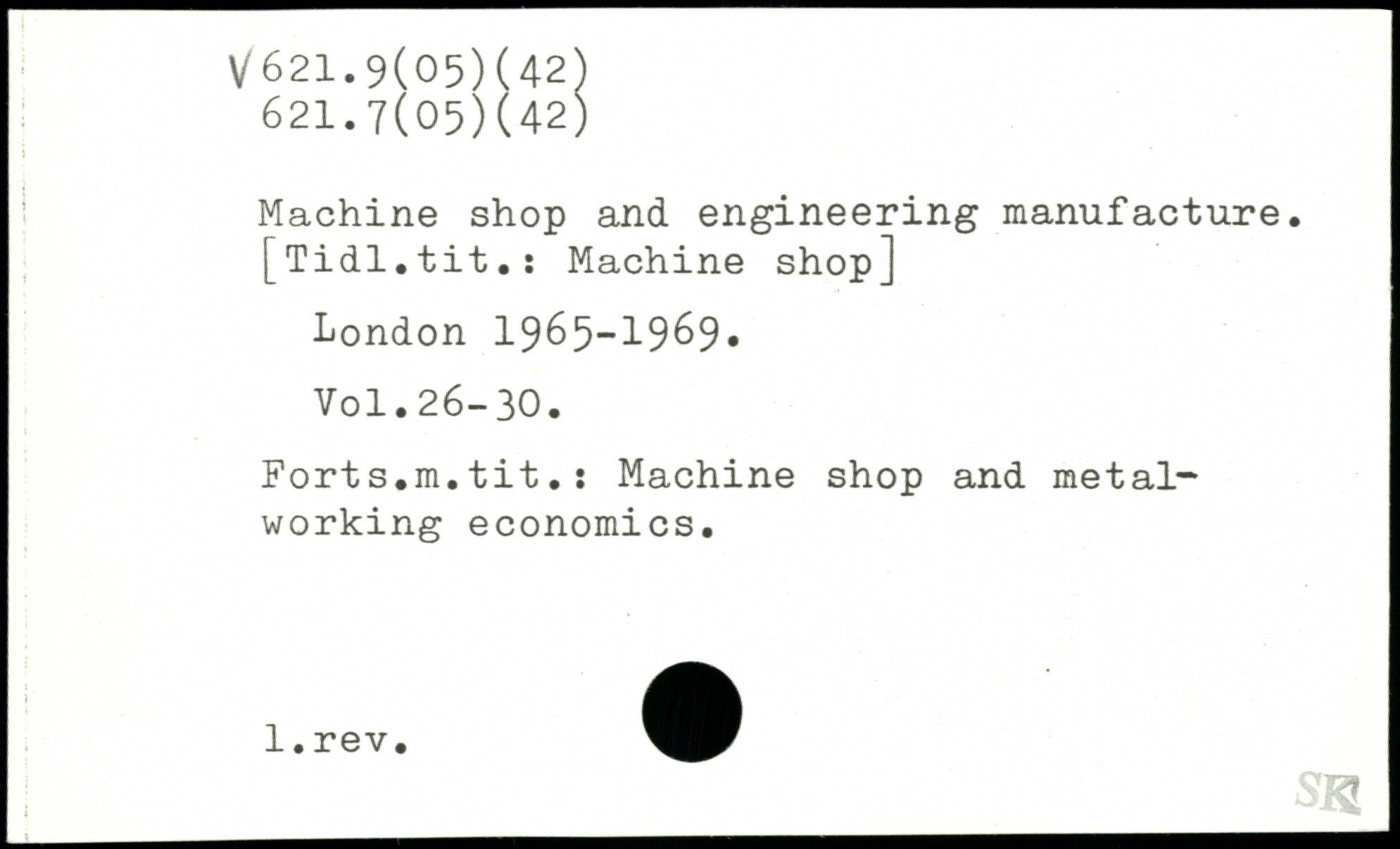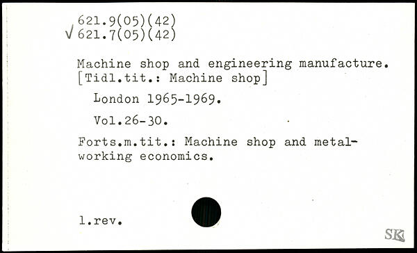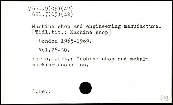 Machine shop and engineering manufacture. [Tidl.tit.: Machine shop]