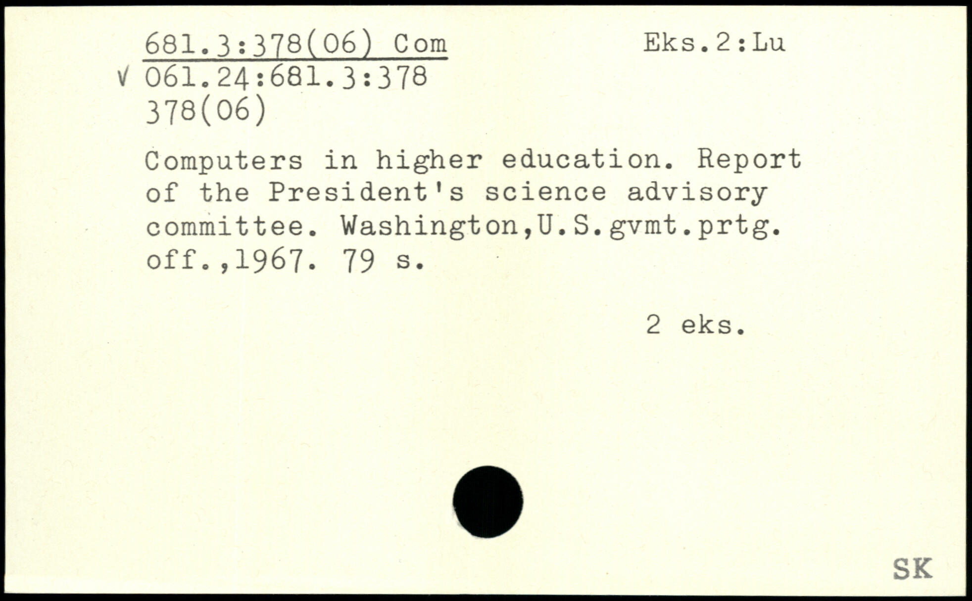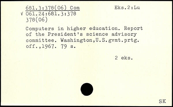 Computers in higher education. Report of the President’s science advisory committee. Washington,U.S.gvmt.prtg. off.,1967.