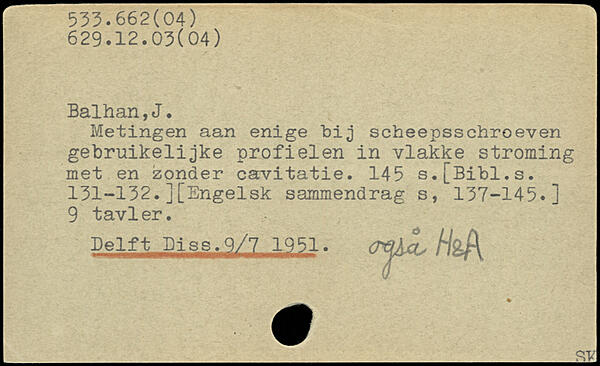 Metingen aan enige bij scheepsschroeven gebruikelijke profielen in vlakke stroming met en zonder cavitatie.
