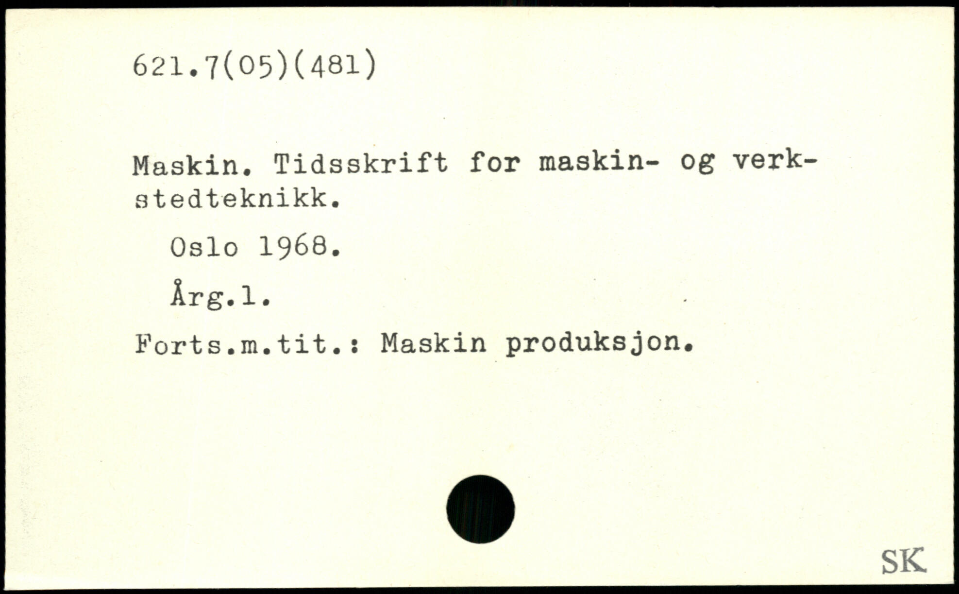 Maskin. Tidsskrift for maskin- og verk- stedteknikk. Oslo 1968. Årg.l. Forts.ra.tit.: Maskin produksjon.
