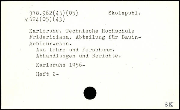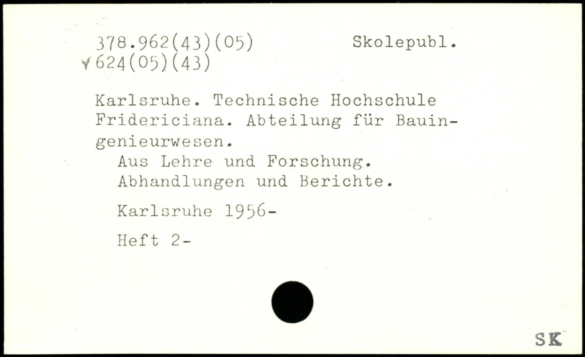 Karlsruhe. Technische Hochschule Fridericiana. Abteilung für Bauingenieurwesen. Aus Lehre und Forschung. Abhandlungen und Berichte. Karlsruhe 1956- Heft 2-