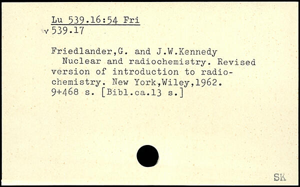 Nuclear and radiochemistry. Revised version of introduction to radio-chemistry.