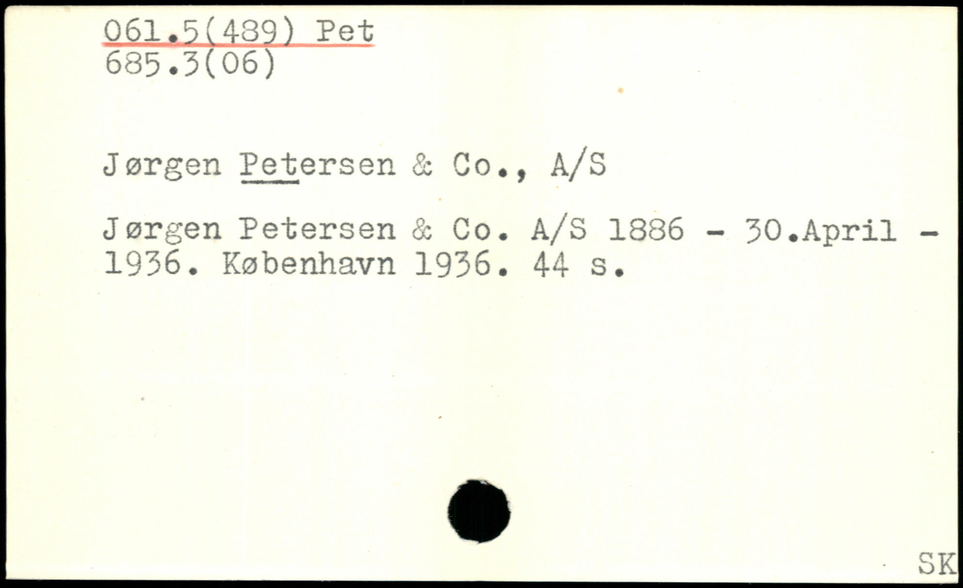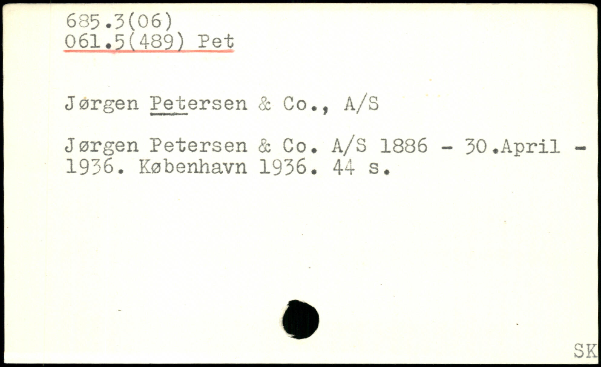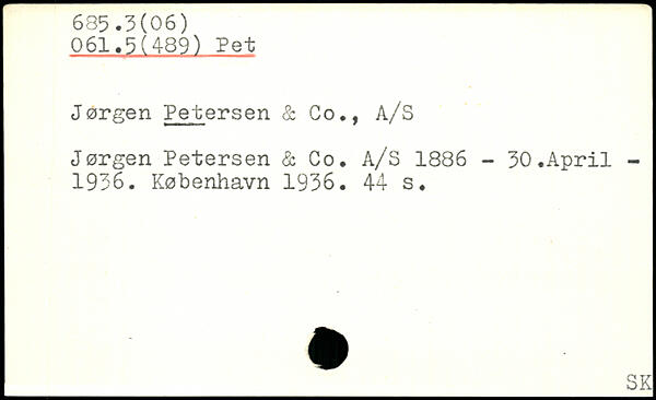 Jørgen Petersen & Oo,, A/S Jørgen Petersen & Co. A/S 1886 - 30.April -1936.