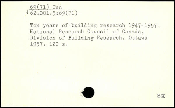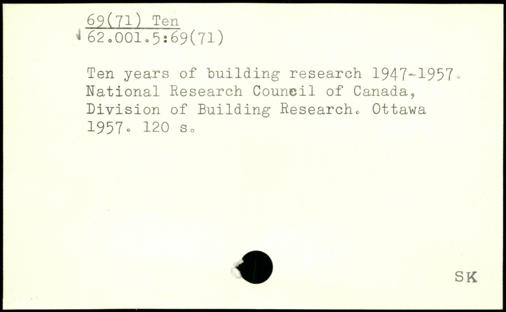 Ten years of "building research 1947-1957^ National Research Council of Canada, Division of Building Research.