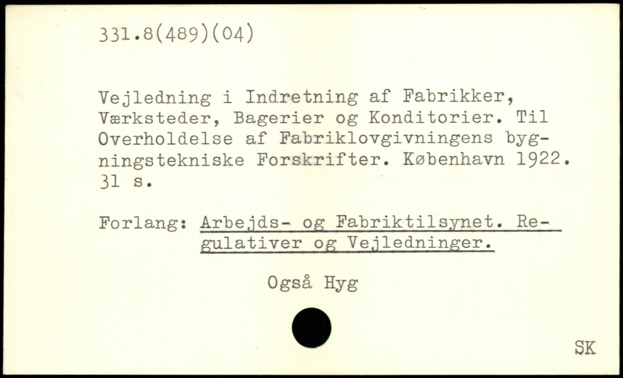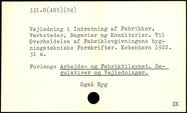 Vejledning i Indretning af Fabrikker, Værksteder, Bagerier og Konditorier. Til Overholdelse af Fabriklovgivningens bygningstekniske Forskrifter.