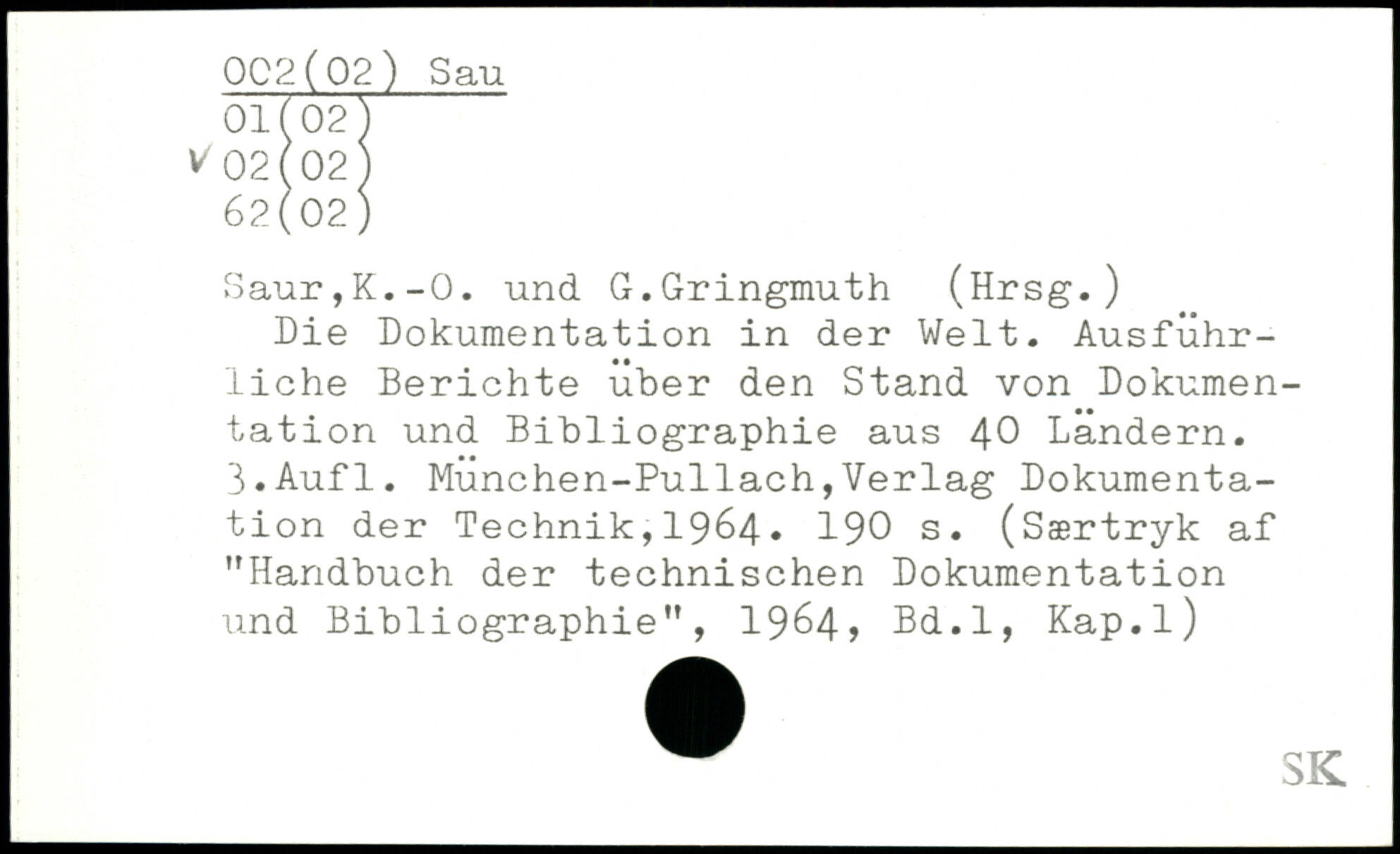 Die Dokumentation in der Welt. Ausführliche Berichte über den Stand von Dokumentation und Bibliographie aus 40 Landern.