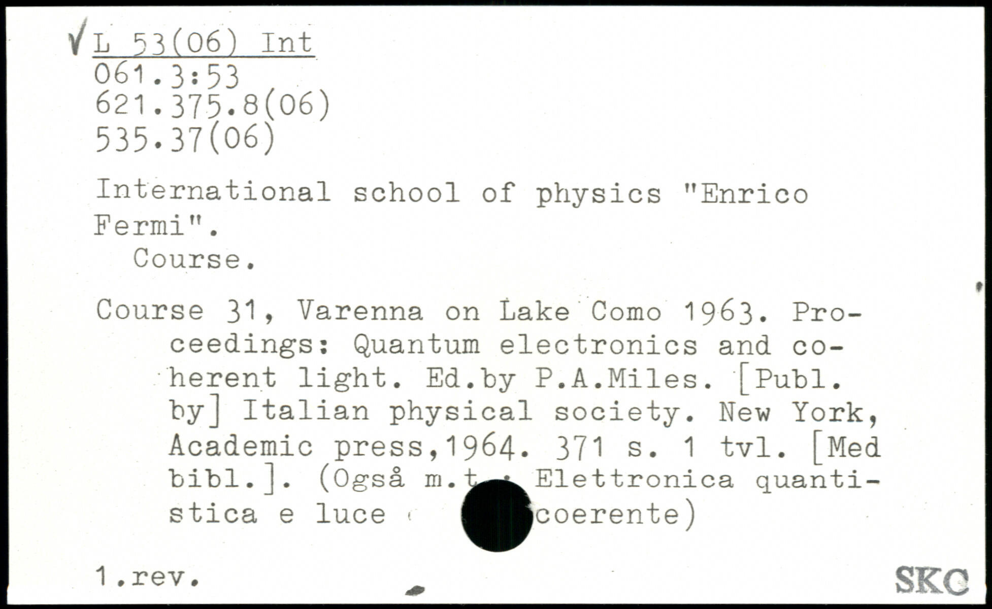 International school of physics "Enrico Fermi". Course. Course 31, Varenna on Lake Como 1963. Proceedings: Quantum electronics and coherent light. Ed."by P.A.Miles.