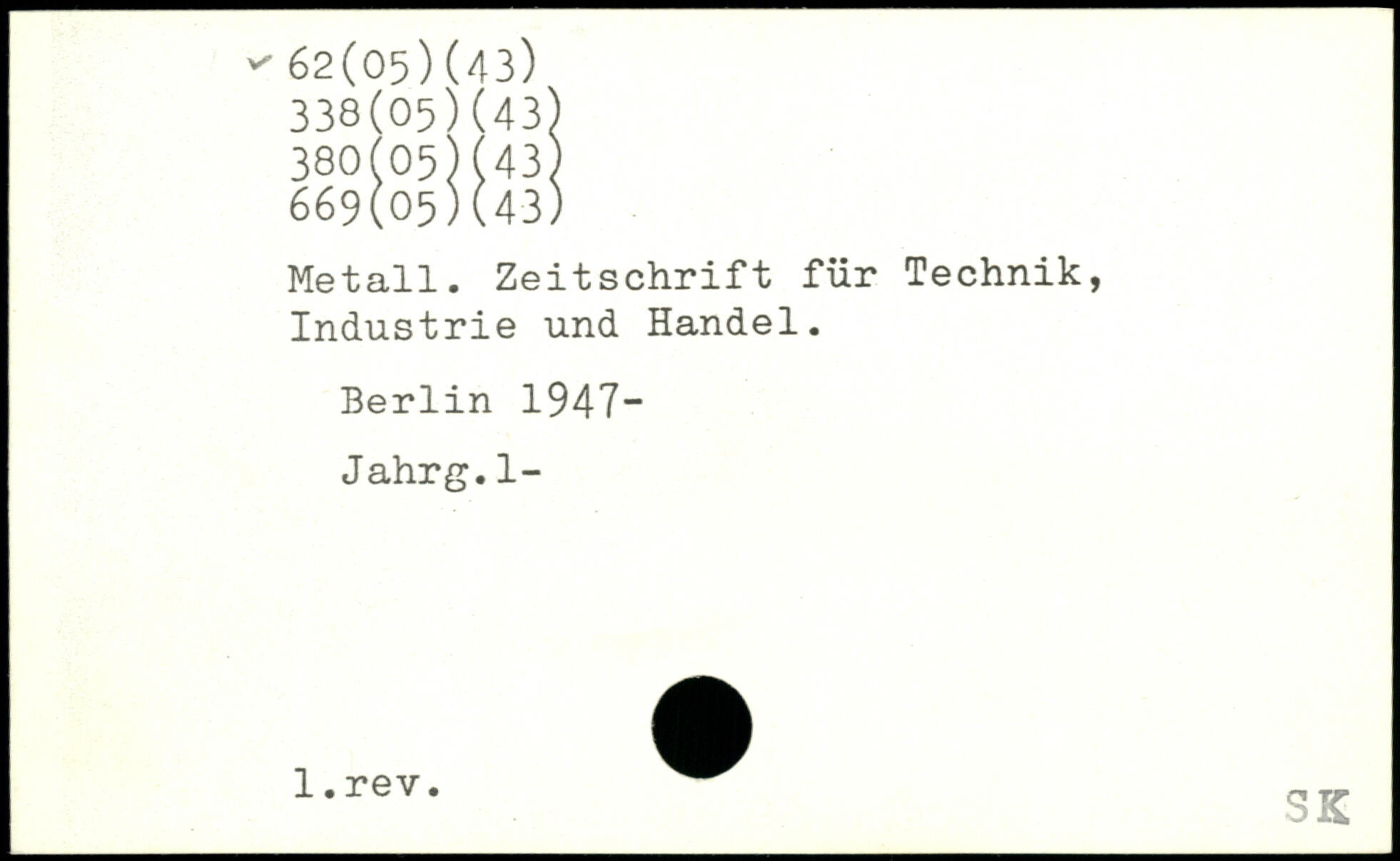 Metall. Zeitschrift für Technik, Industrie und Handel.