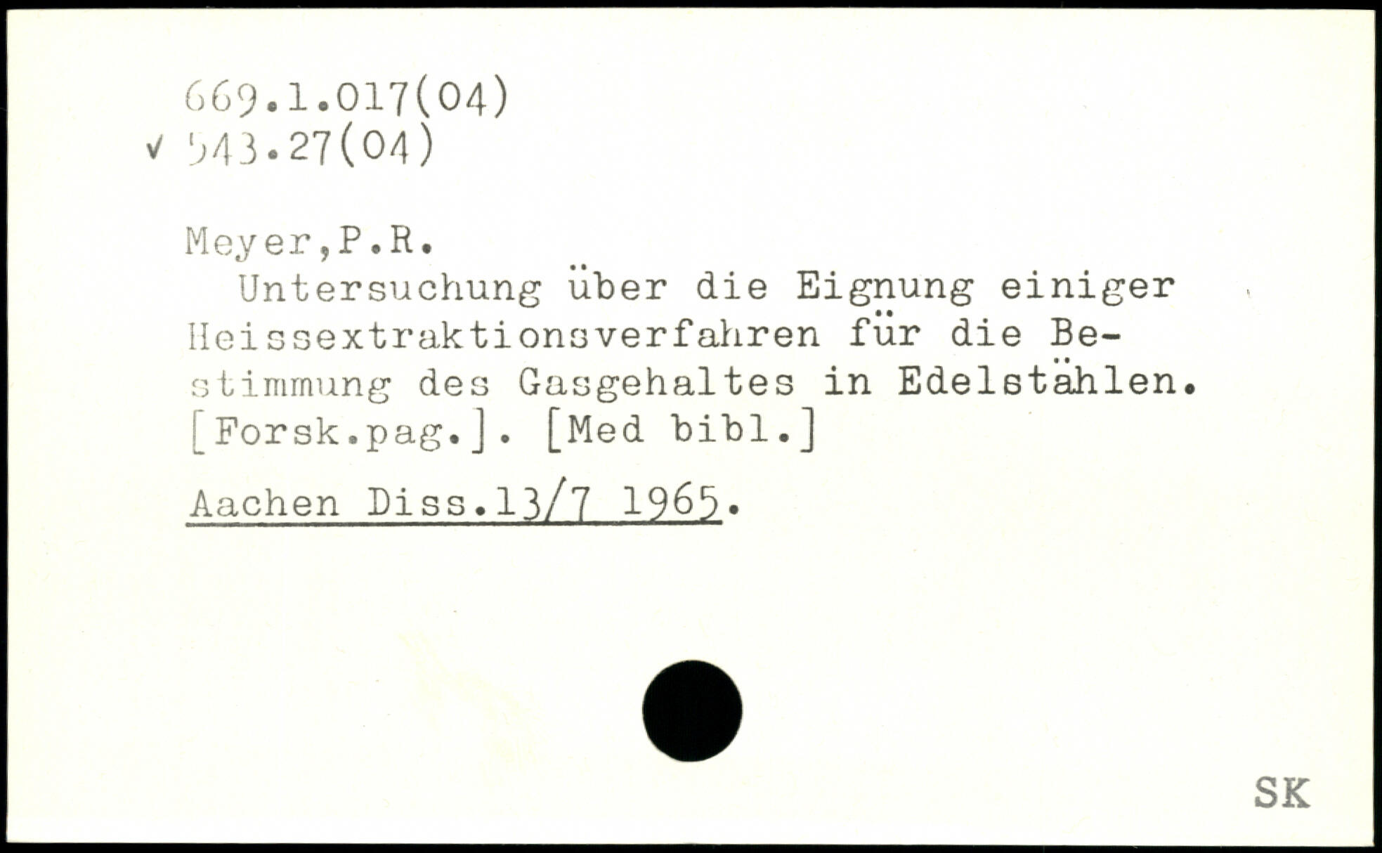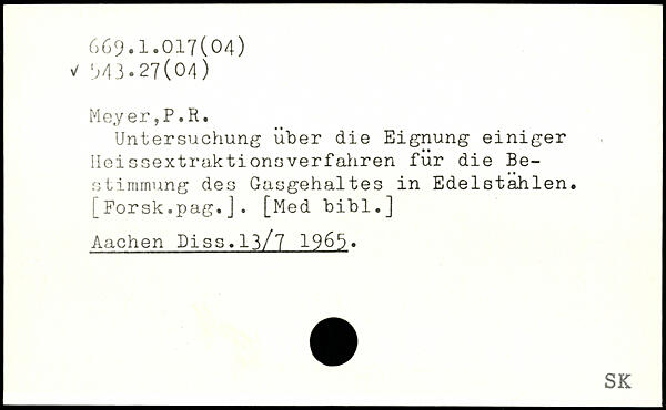Untersuchung über die Eignung einiger Heissextraktionsverfahren für die Bestimmung des Gasgehaltes in Edelstahlen. [Forsk.pag.J. [Med bibl.] Aachen Piss.13/7 1963