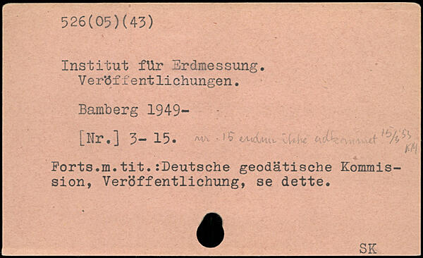 Institut für Erdmessung. Veröffentlichungen. Bamberg 1949- KAf Ports.m.tit.:Deutsche geodätische Kommission, Veröffentlichung, se dette. _5_SK