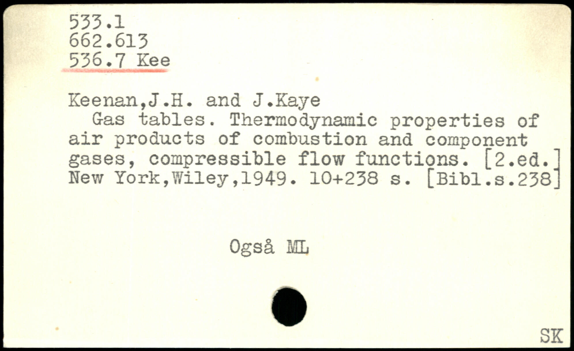 G-as tables. Thermodynamic properties of air products of combustion and component gases, compressible flow functions. [