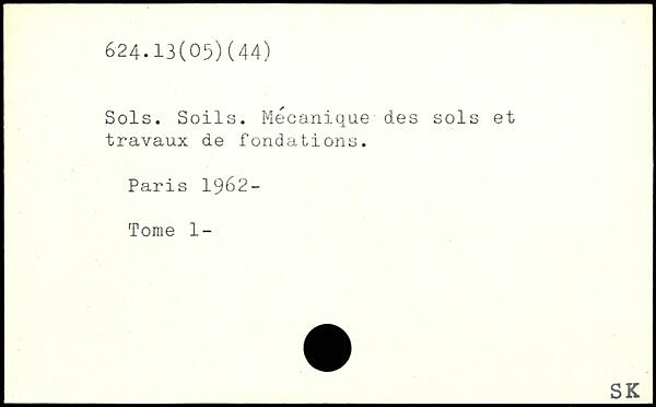 Sols. Soils. Mécanique des sols et travaux de fondations.