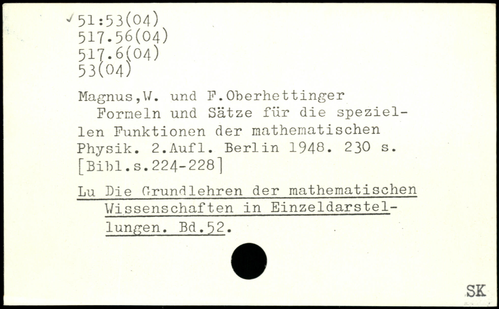 Formeln und Sätze für die speziellen Funktionen der mathematischen Physik.