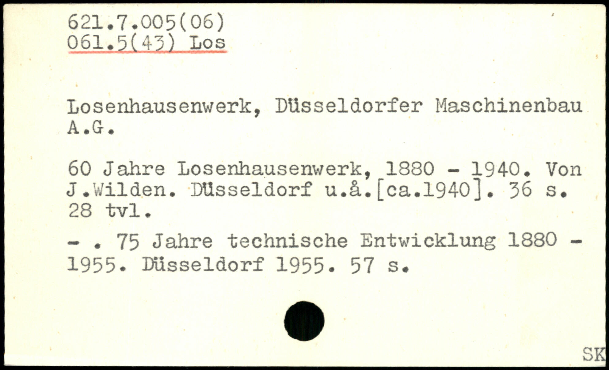 Losenhausenwerk, Düsseldorfer Maschinenbau A.G-. 60 Jahre Losenhausenwerk, 1880 - 1940. Von J.Wilden. Düsseldorf u.ä.[ca.1940].
