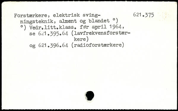 Forstærkere, elektrisk sving- 621.375 ningsteknik, alment og blandet .) .) Vedr.litt.klass. før april 19^4, se 6^1.395.64