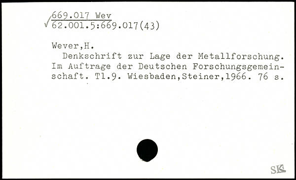Denkschrift zur Lage der Metallforschung. Im Aufträge der Deutschen Forschungsgemeinschaft. TI.9.