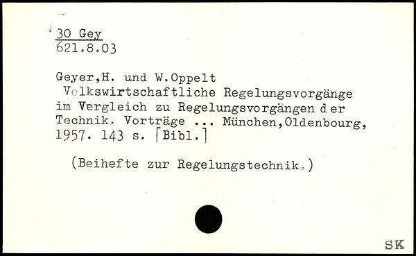 Geyer,H. und V.Oppelt Volkswirtschaftliche Regelungsvorgänge im Vergleich zu Regelungsvorgangen der Technik. Vorträge ...