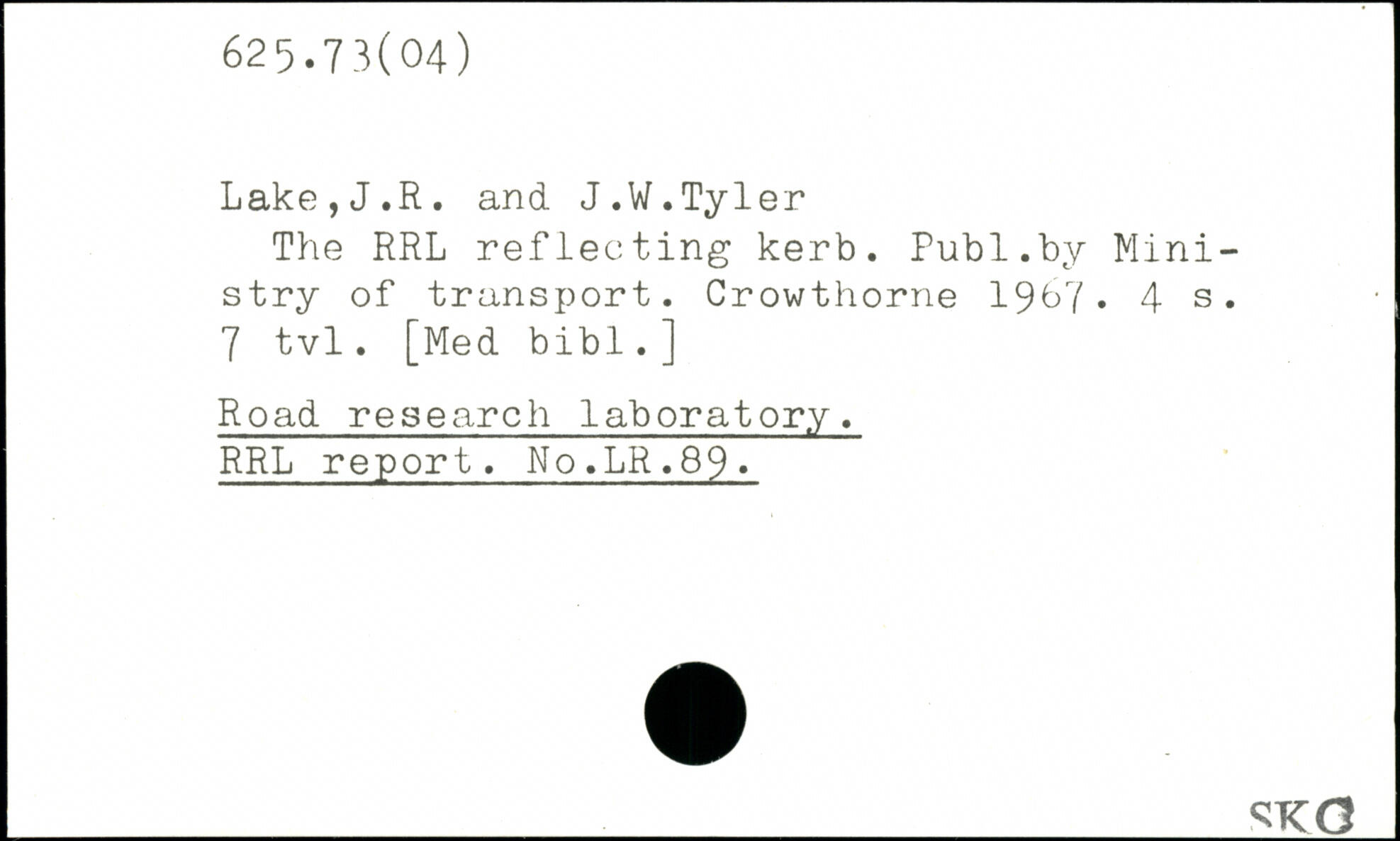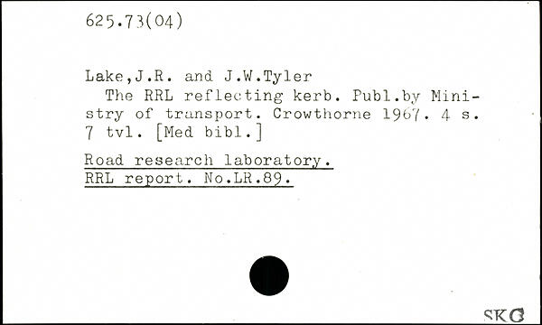 The RRL reflecting kerb. Fubl.by Ministry of transport. Crowthorne 1967.