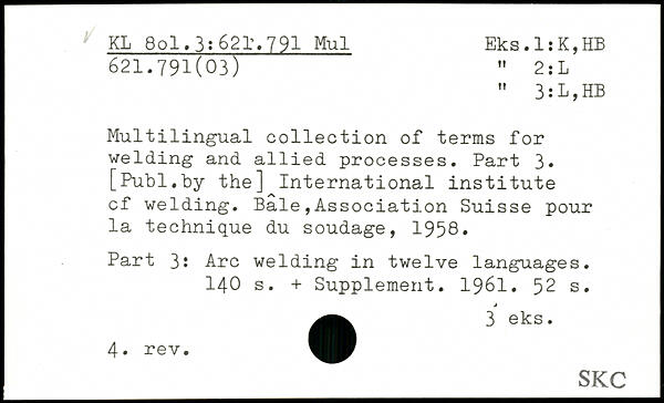 Multilingual collection of terms for welding and allied processes. Part 3