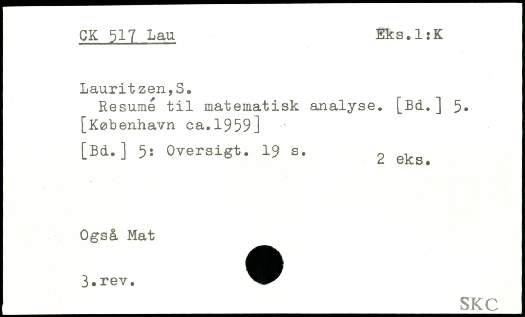 Resumé til matematisk analyse. [Bd. ] 5, [København ca.1959] [Bd.] 5: Oversigt.
