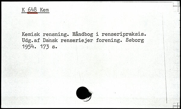 i r K 6.f8 Kern Kemisk rensning. Håndbog i renseripraksis. Udg.af Dansk renseriejer forening. Søborg 1954.