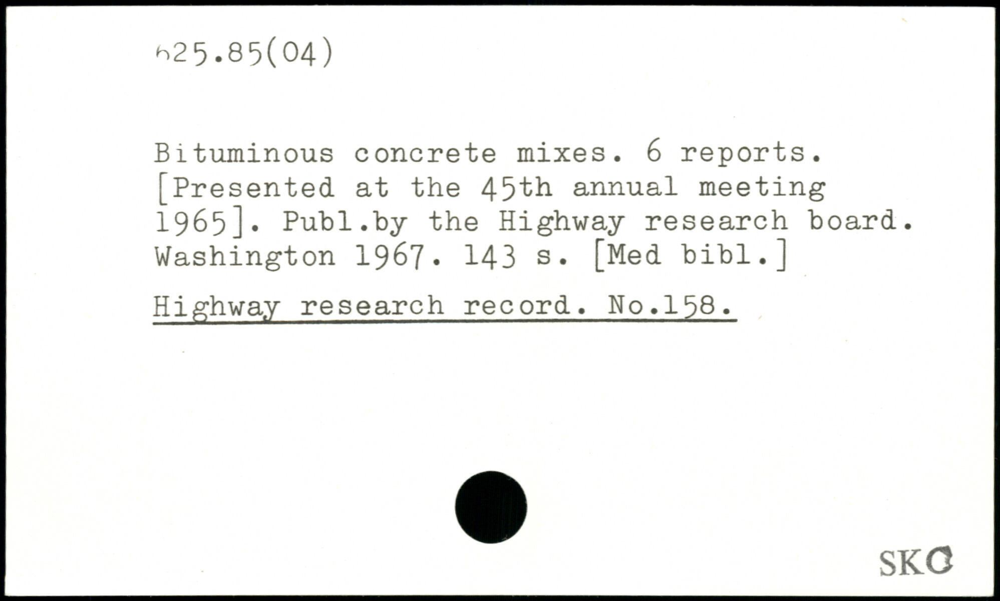 Bituminous concrete mixes. 6 reports. [Presented at the 45th annual meeting 1965]