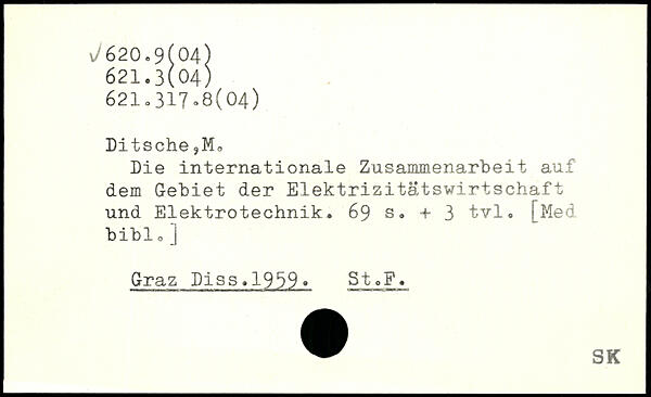 Ditsche 9Ma Die internationale Zusammenarbeit auf dem Gebiet der Elektrizitätswirtschaft und Elektrotechnik.