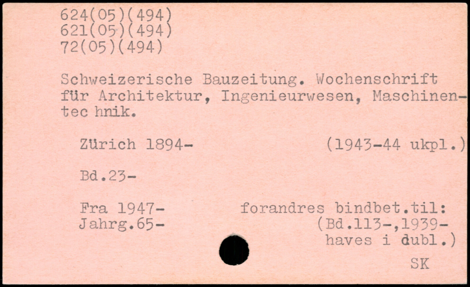 Schweizerische Bauzeitung, Wochenschrift für Architektur, Ingenieurwesen, Maschinen-tec hnik. Zürich 1894- (1943-44 ukpl.)